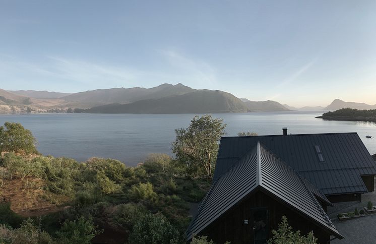 Förslag på tak med klassiska profilen Plannja Trend, men inom ramen för nya varumärket Plannja Infinity där takprofilerna har tillverkats av återvunnet stål.(AI-förlängd bild)