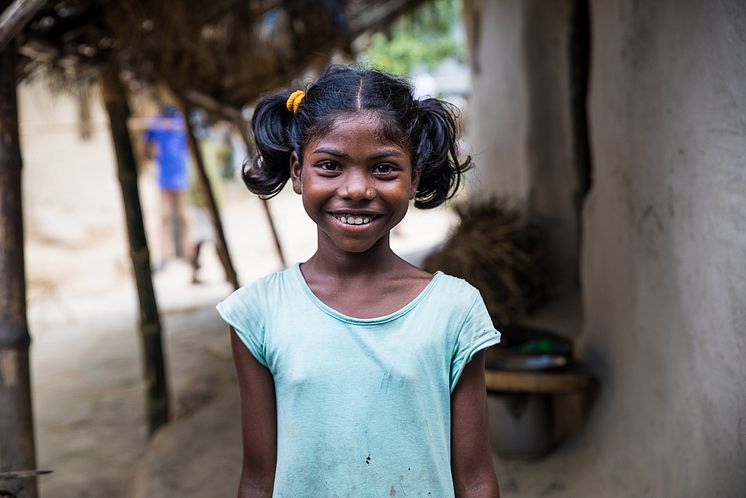 Joshna, 10 år, i byn Goyerpur, Bangladesh, drömmar om att bli läkare. Men först behöver hon få gå i skola på sitt eget språk. Foto Annelie Edsmyr_low