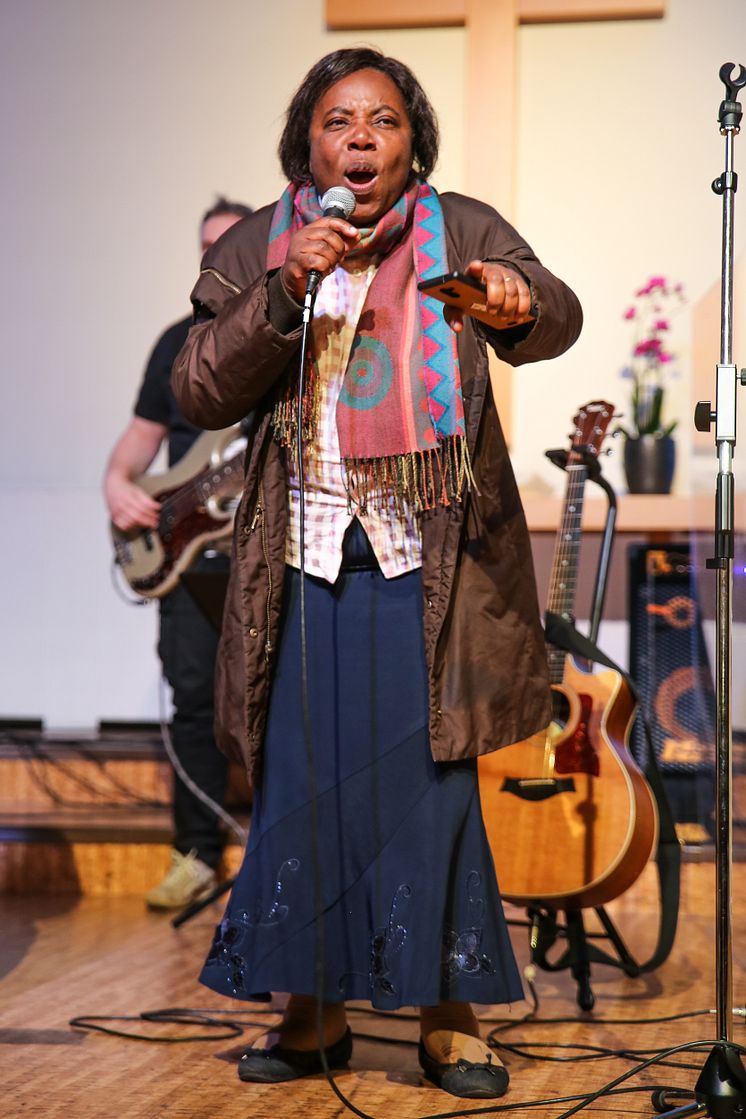 Solange Kasiba från DR Kongo medverkade vid en konsert i Bankeryd den 7 april.