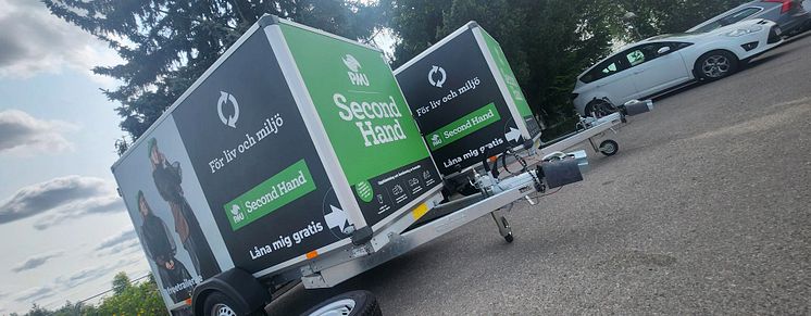 PMU Second Hand har ingått ett samarbete med Freetrailer Group A/S som erbjuder gratis utlåning av släp till den som behöver. Genom en app, där det enkelt går att hämta ut och lämna tillbaka släpet genom självbetjäning, kan alla i Trollhättan låna släp utanför PMU Second Hand.