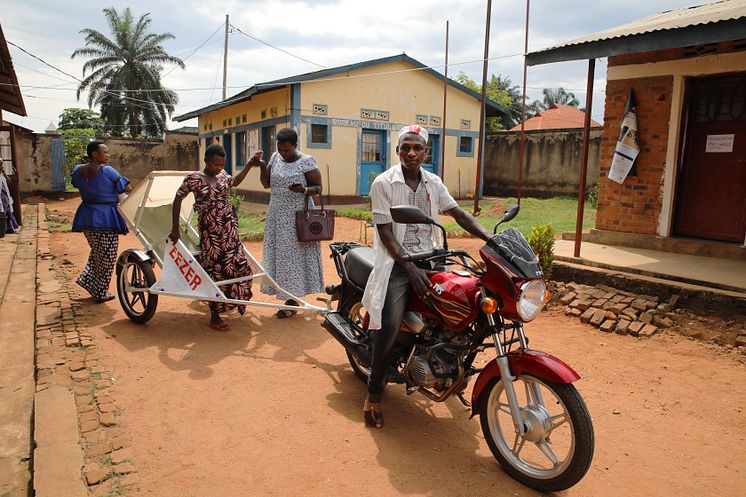 – En väldigt stor del av de kvinnor som ska föda barn i Burundi måste gå till fots. När jag besökte en av klinikerna uppe i bergen i södra Burundi mötte jag en ung mamma som hade värkar. Det var hennes första barn och hon hade gått till fots tre kilometer för att komma till kliniken. Utanför på gårdsplanen stod en ny mc-ambulans. Det kändes skönt att veta att den nyförlösta mamman skulle slippa gå de tre kilometerna hem med sitt barn, säger Lars Klingsbo, PMU:s projektledare och kommunikatör som kommer vara på plats i Umeå, Skellefteå och Piteå under morsdagshelgen.