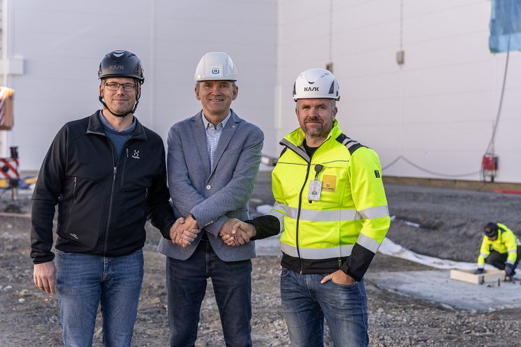 Nu byggs andra etappen av Polarbageriet i Älvsbyn_Fr.v. Jonas Holmgren - Fastighetschef, Anders E Johansson - vd Polarbröd och Samuel Hellström - vd Hellströms Bygg