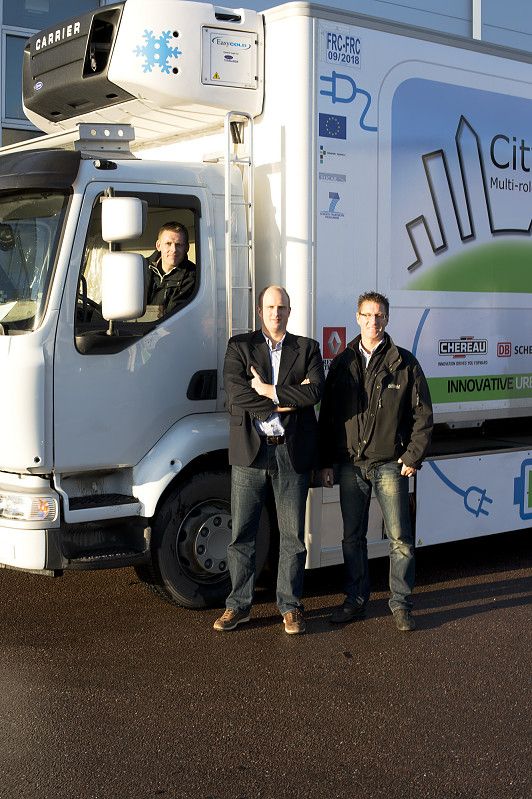 Den första helt eldrivna distributionsbilen är i Sverige för att testas av Polarbröd och deras distributör Polfärskt. Här på bilden (fr vänster) är Daniel Ståhle, säljare på Polfärskt, Jens Hardegård, produktionschef på Polarbröd och Tomas Johansson, VD och ägare av Polfärskt i Uppsala.