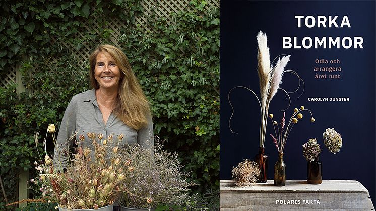 Torkade blommor syns i allt från trendiga magasin och inredningsbutiker – till brudbuketter. Nu ger vi ut blomsterstylisten Carolyn Dunsters bok Torka blommor på svenska. Det är en vacker och rikt illustrerad bok, som hjälper oss att lyckas med såväl torkning som arrangemang.