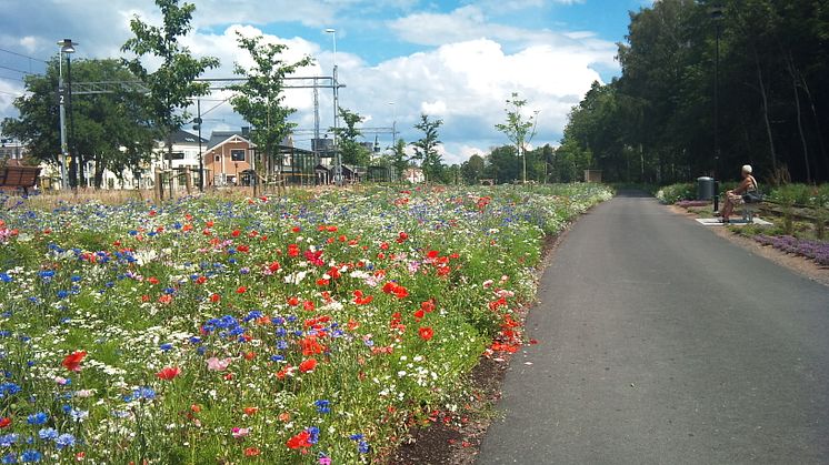 Den som tar tåget till Nybro kan se insatserna för att gynna pollinatörer redan vid stationen.