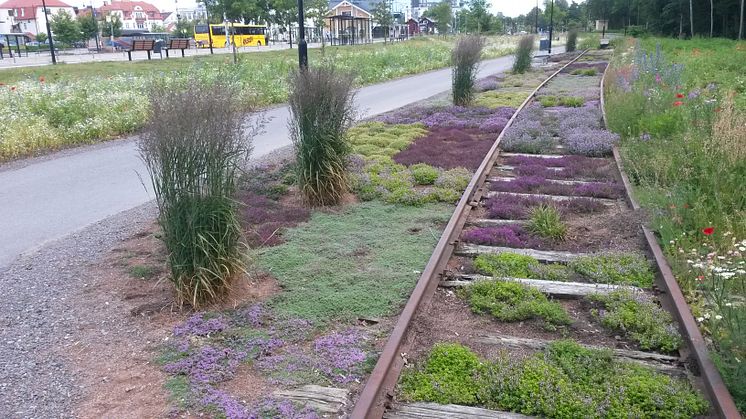 Här finns anlagda ängar med torktåliga växter planterade i en speciell typ av grus.