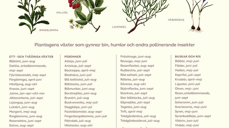 I början av året inledde Pollinera Sverige och Plantagen ett samarbete för att hjälpa kunderna att välja växter som gynnar pollinerande insekter. Med start i maj kommer alla Plantagens butiker i både Sverige, Norge och Finland att ha informativa skyltar med växter och insekter framtagna av Pollinera Sverige.