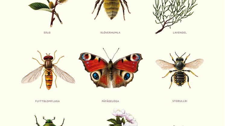 – Vi har tagit fram kampanjmaterialet för att på ett enkelt och attraktivt sätt kunna peka på vilka pollinatörerna är och visa ett bra urval växter som ger dem näring, berättar Anna Lind Lewin som producerat skyltar, kort och affischer tillsammans med illustratören Aron Landahl.