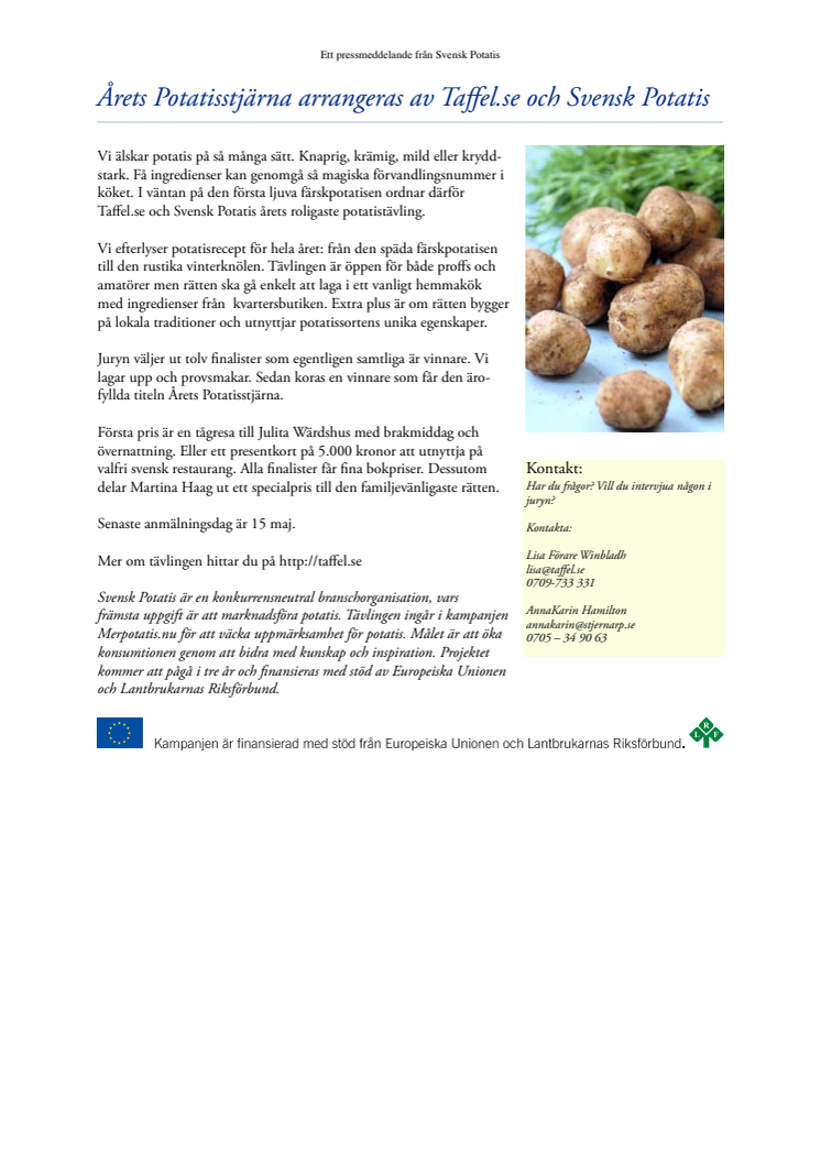 Mer om tävlingen hittar du på http://taffel.se och www.merpotatis.nu