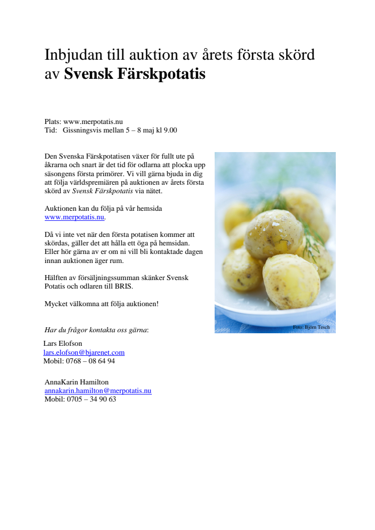 Auktionen kan du följa på vår hemsida www.merpotatis.nu.