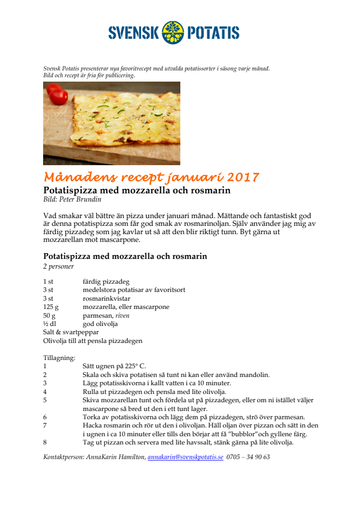 Kontaktperson: AnnaKarin Hamilton, annakarin@svenskpotatis.se 0705 – 34 90 63