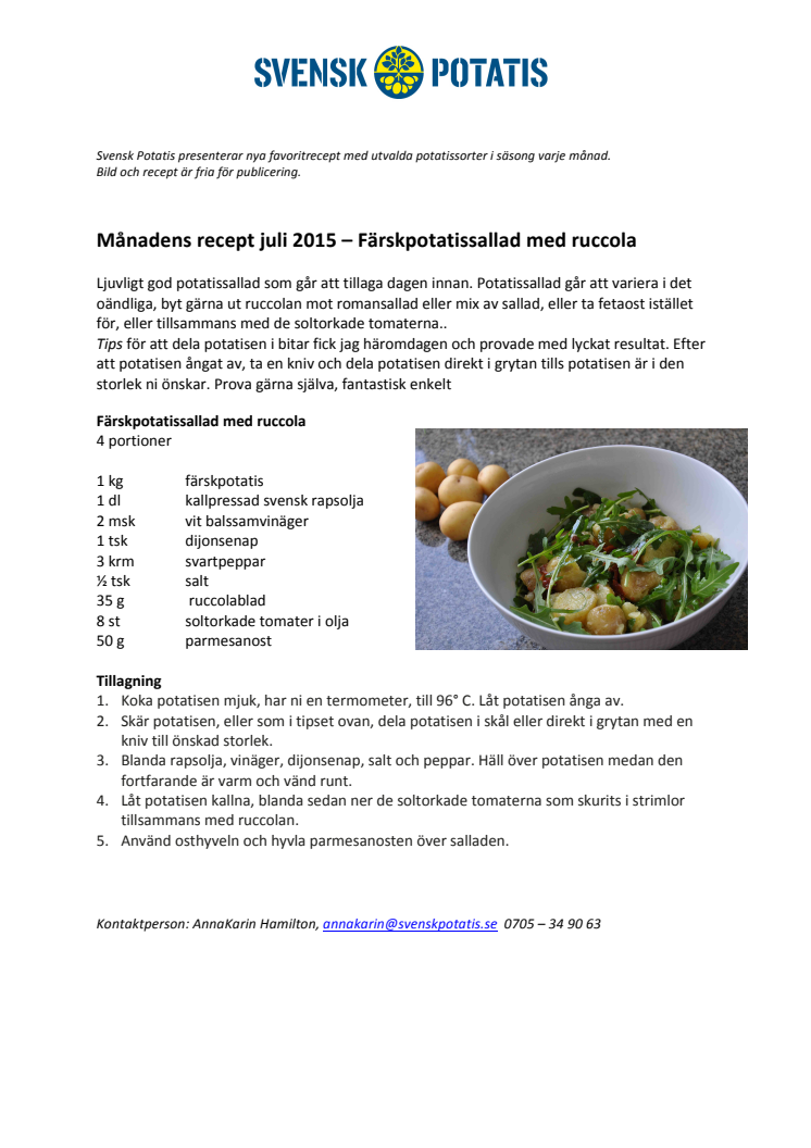 Kontaktperson: AnnaKarin Hamilton, annakarin@svenskpotatis.se 0705 – 34 90 63