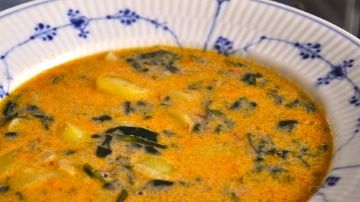 Fräs finhackad lök, skivad potatis och grovhackad grönkål i olja. Tillsätt vatten, buljongtärning, tomatpuré, timjan, peppar och ev. salt. Koka i ca 15 min. Rör ned crème fraichen. Smaka av med lite salt.