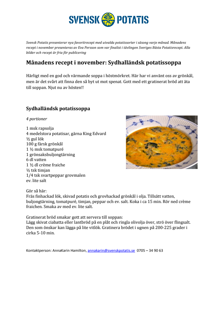 Kontaktperson: AnnaKarin Hamilton, annakarin@svenskpotatis.se 0705 – 34 90 63
