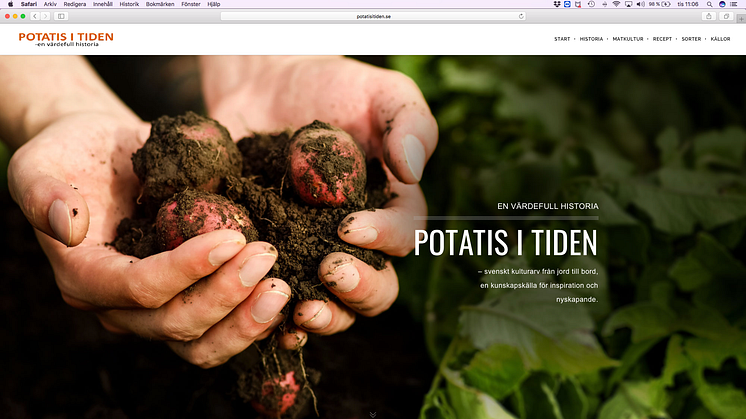 Svensk Potatis och Hushållningssällskapet lanserar nu matnyttiga webbsidan ”Potatis i tiden” som är en fantastisk kunskapskälla om vår mest älskade knöl. – Vi har grävt i de djupaste arkiven om potatisens betydelse för Sverige, intressanta fakta om sorter och odling, historiska recept, unika bilder och anekdoter. Det är en fullmatad kulturhistorisk och kulinarisk webbplats som ska föra potatistraditionen vidare, säger AnnaKarin Hamilton som är marknadsansvarig för Svensk Potatis AB.