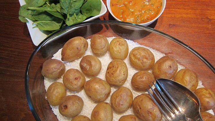 till rätten. Potatisen blir frasigt hårt i skalet och god och mjuk inuti. Prova