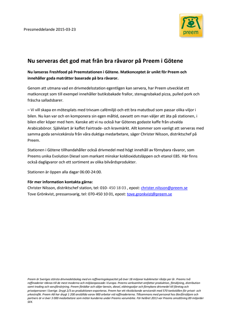 Nu lanseras Freshfood på Preemstationen i Götene. Matkonceptet är unikt för Preem och innehåller goda maträtter baserade på bra råvaror.