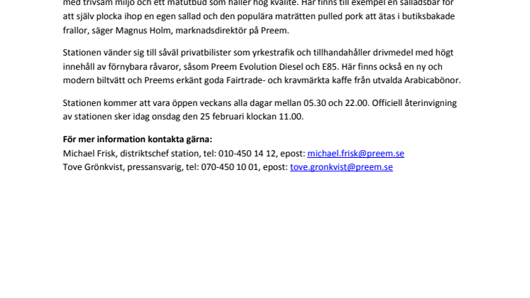 Michael Frisk, distriktschef station, tel: 010-450 14 12, epost: michael.frisk@preem.se