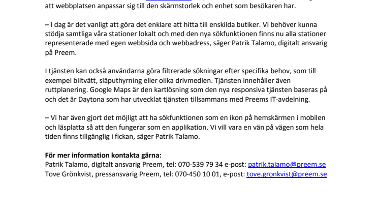 Patrik Talamo, digitalt ansvarig Preem, tel: 070-539 79 34 e-post: patrik.talamo@preem.se