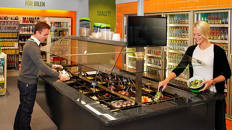 Tre av Preems bemannade stationer kan nu erbjuda förstklassiga salladsbarer i butiken. Lund Gastelyckan, Halmstad Vallås och Linköping Vallarondellen är stationerna som satsar på grönare och nyttigare komplement i matutbudet till allt fler lunchande kunder.