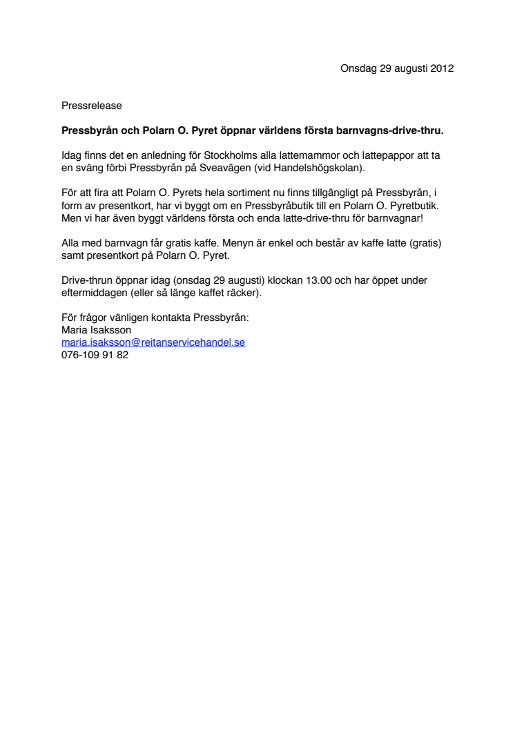 Pressbyrån och Polarn O. Pyret öppnar världens första barnvagns-drive-thru.