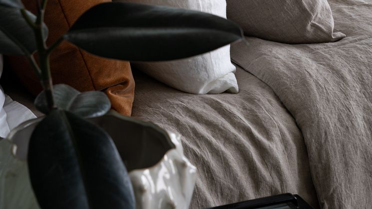 På bilden syns linnelakan i 100% naturligt linnetyg, tillverkat i Estland.