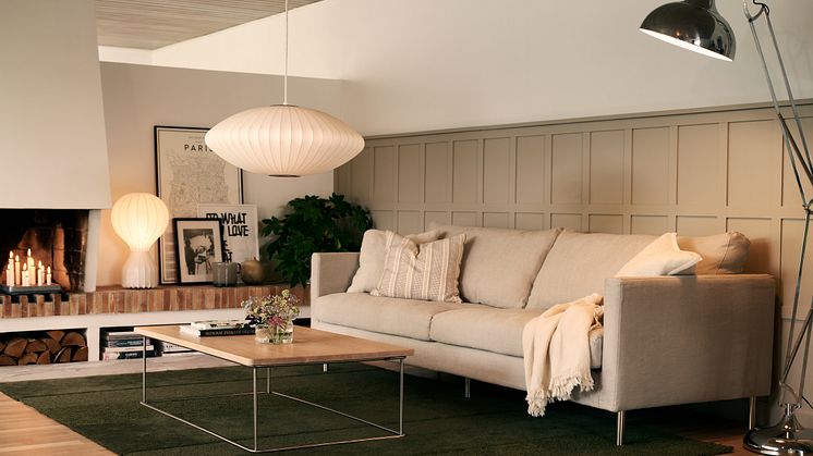 På bilden: Impulse, en modern och stilren soffa som går att få i många olika storlekar och kombinationer. Här syns den som 4-sits i tygfavoriten Caleido, ett härligt bomulls/linnetyg som enkelt tas av och tvättas vid behov.