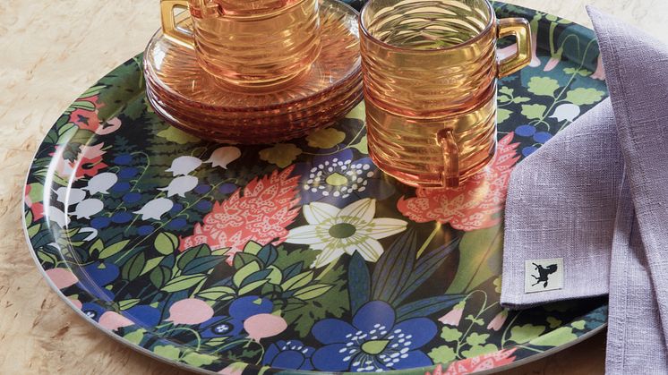 Här syns Skogen, bricka, svart, grön, rosa, 38 cm. Tillverkad av trä.