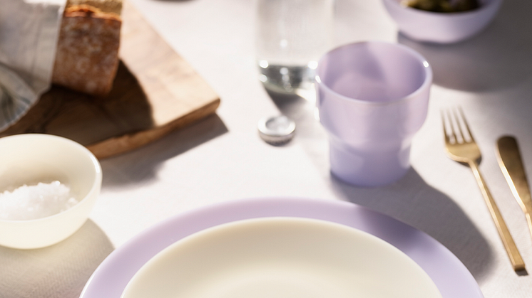 Här syns Lucie Kaas tallrikar och skålar i en av tiderna absolut hetaste material - målat glas. Den nya glasservisen är gjord av opalglas och kollektionen består av sex vackra pastellfärger. Opalglaset är även känt som mjölkglas och kallas detta på grund av dess "dimmiga" utseende, och det är just denna referens som har gett namn åt samlingen - MILK.