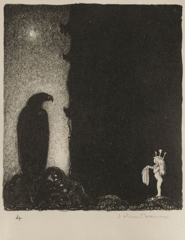John Bauer, Här har du allt som återstår av mina kläder, 1915. Akvarell och gouach på papper 30 x 34 cm.