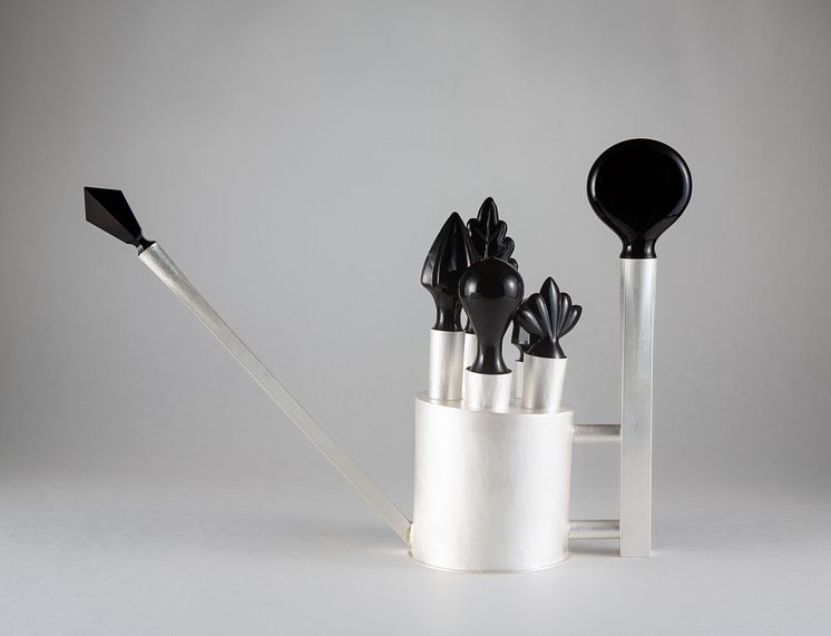 • Pernilla Sylwan, Svartvit kanna, 2024. Silver och svart glas.