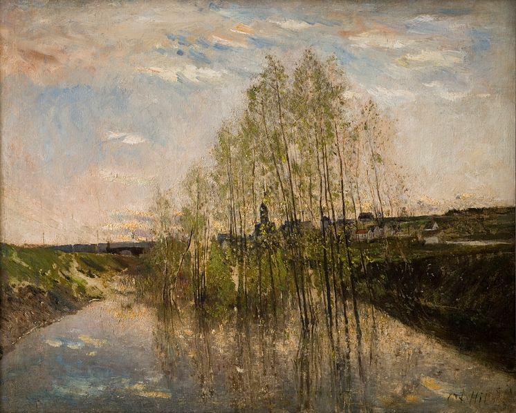 • Carl Fredrik Hill, Flodlandskap I, Champagne, omkring 1877. Olja på duk, 64 x 82 cm Svenska Akademien