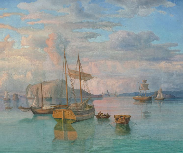 • Lars Hertervig, Marine, 1867. Olja på duk, 52 x 63 cm.
