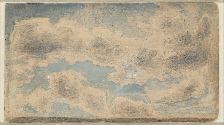 • Lars Hertervig, Skystudie, Odaterad. Akvarell på papper, 6 x 11 cm.