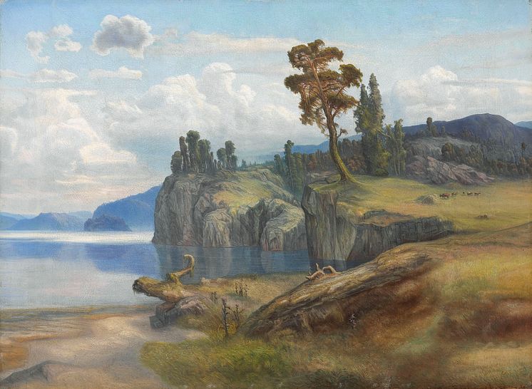 • Lars Hertervig, Landskap, 1867. Olja på duk, 46 x 62 cm. Sparebankstiftelsen DNB.
