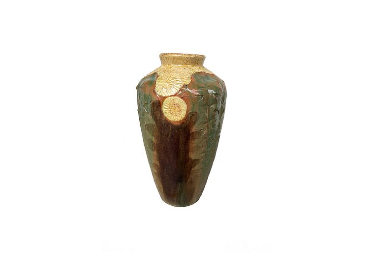 • Maja Fjæstad, Bonad / Väggstycke, Primulor, 1899. Gobelin, ylle på linvarp, 57 x 51 cm. Kulturen i Lund.