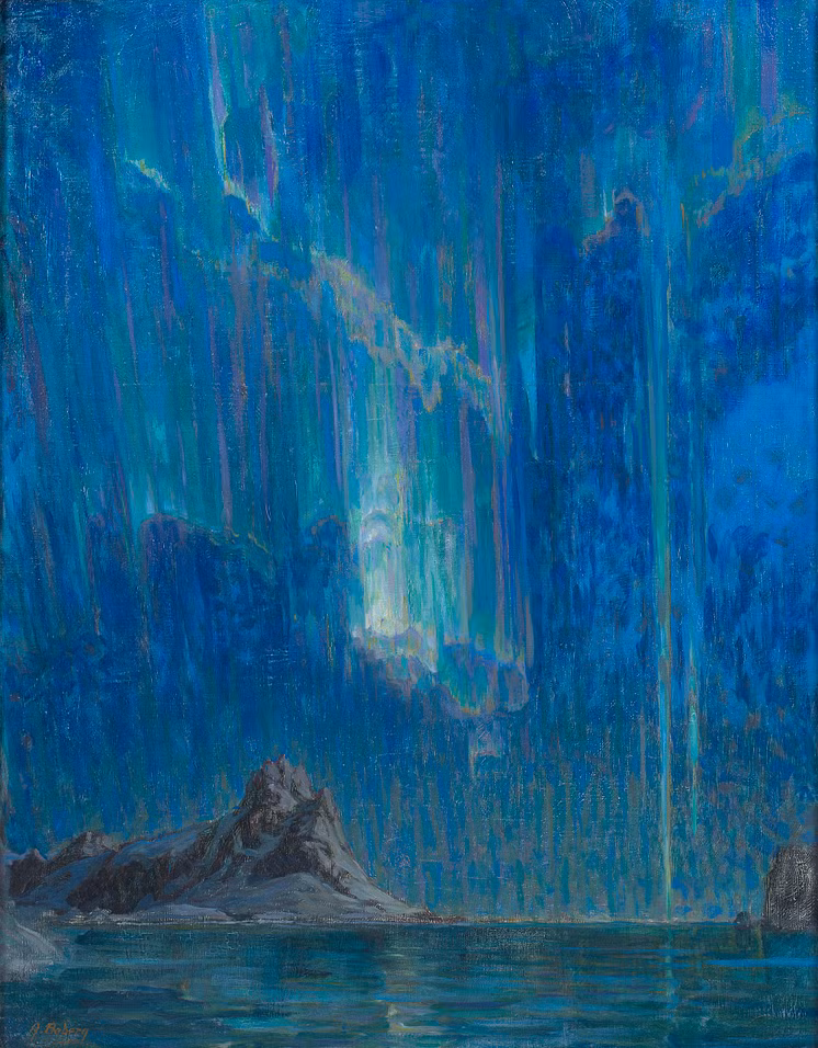 • Anna Boberg, Norrsken. Studie från Nordlandet, odaterad. Olja på duk, 97 x 75 cm. Nationalmuseum.