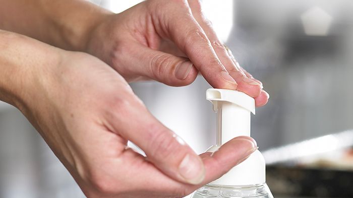 Efter noggrann handtvätt är det lämpligt att använda handdesinfektion.