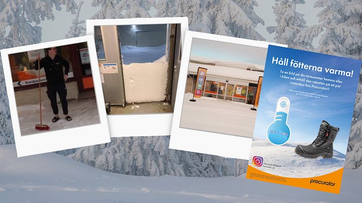 Samtidigt rullar norrlandsbutikerna igång en specialkampanj för just fötternas skull. I kampanjen "Håll fötterna varma" kan du som bor och verkar i och omkring Procuratorbutikerna i Luleå, Skellefteå, Umeå och Örnsköldsvik ta en bild på termometern hemma eller i bilen och använda gradantalet som rabatt. Rabatten gäller på ett par grymma vinterskor i norrlandsbutikerna. (Maxgräns -30° som ger 30% rabatt. Gäller Procurator i Luleå, Skellefteå, Umeå och Örnsköldsvik, 25-29 januari 2021).