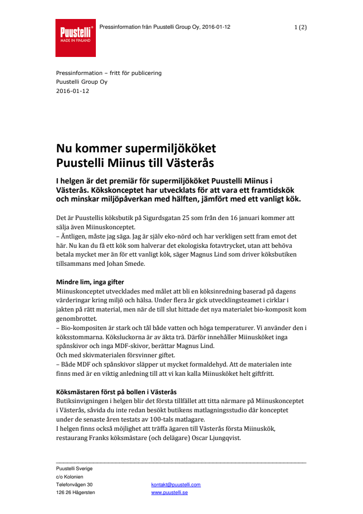 I helgen är det premiär för supermiljököket Puustelli Miinus i Västerås. Kökskonceptet har utvecklats för att vara ett framtidskök och minskar miljöpåverkan med hälften, jämfört med ett vanligt kök.