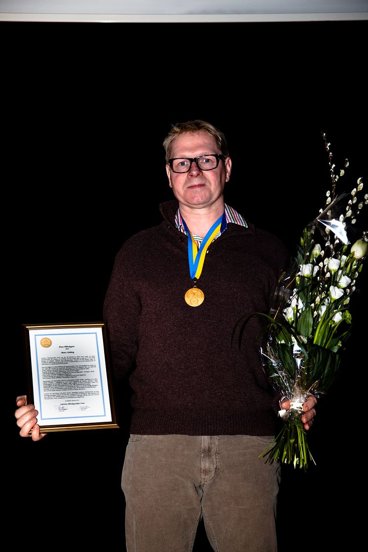 Mats Lönberg fick ta emot medalj, diplom, blommor samt ett stipendium på 15 000 kronor av stiftelsens ordförande Thord Blomquist.
