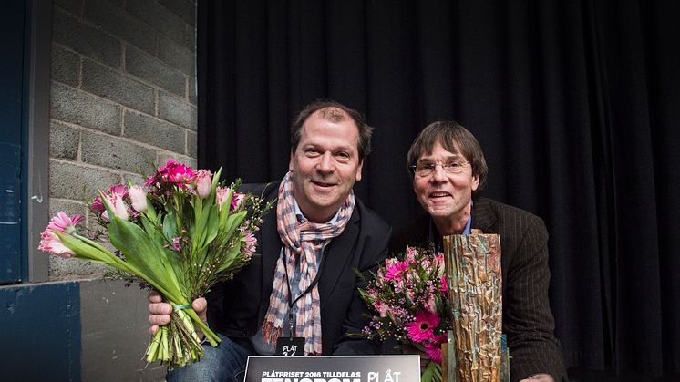 I år fick vinnarna förutom titeln, blommor, plåtdiplom, ära och berömmelse – även ta emot det nyframtagna plåtpriset, ett metallkonstverk, signerat Marie Louise Kold. PLÅTPRISET 2016 mottogs av Fritz Olausson och Magnus Almung från Tengbom.