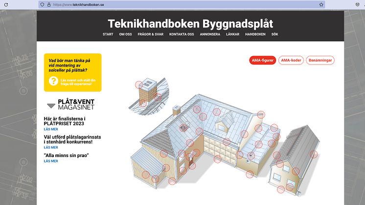 – Syftet med Teknikhandboken är att lyfta fram och belysa byggplåtens fördelar och möjligheter. Den stora förändringen med sajten är en ny ”port” som sätter fokus på AMA-figurer, AMA-koder och benämningar, säger Tomas Skagerlind, kommunikationschef på Plåt & Ventföretagen.