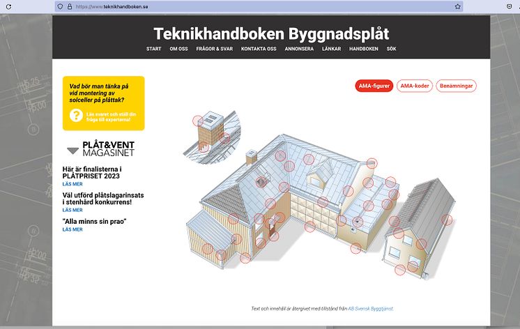 – Teknikhandboken är en mycket populär sajt och vi kan visa upp mycket fina besökssiffror. Det är inte ovanligt att vi har uppemot 10 000 unika besökare under en månad. Men det är viktigt att komma ihåg att innehållet inte är avsett att användas som referensmaterial i kontraktshandlingar. I ritningar och beskrivningar och andra kontraktshandlingar bör i stället hänvisning göras till den senaste versionen av AMA Hus eller andra tekniska referensmaterial, säger Rickard Lindskog, företagsrådgivare på Plåt & Ventföretagen.