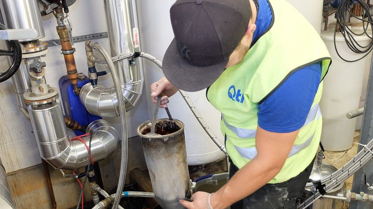 Hjälpen heter avgasning och rening. QTF filtrerar bort magnetit, ibland tillsammans med kraftig backspolning av speciellt utsatta delar av systemen och därefter snabbavgasning av syre och andra gaser. Utan syre avstannar korrosionen och systemvätskan kan börja fungera som den energibärare av värme eller kyla som det var tänkt.