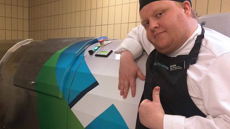 "Med en kompostmaskin i huset förvandlar vi matresterna till jord och gödsel direkt här på hotellet. Jorden ska sedan användas till en alldeles egen jordgubbsträdgård här på hotellets bakgård”, berättar Ina Aganovic, hotelldirektör på Quality Hotel Winn, Göteborg.
