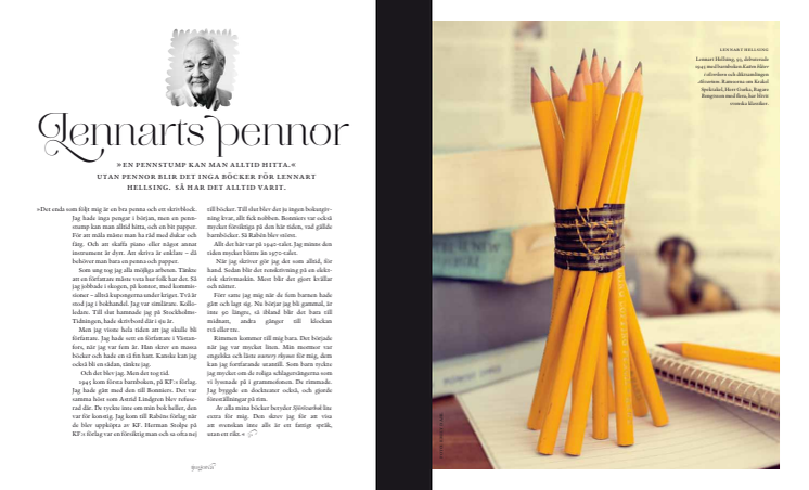 Lennart Hellsing skriver om sitt förhållande till pennor, 2012