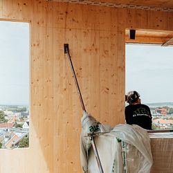 Radar bygger schyssta bostäder i Varberg Det ska kännas att huset är byggt i trä. Allt från förnimmelsen av kvistar under fötterna till ljudet som hörs när grannen slår in en spik i väggen. Kv Tärnan, som utvecklats av Radar, är stadens första flerfamiljshus med stomme av korslimmat trä. Valet av trä har minskat klimatavtrycket med 60 procent, samtidigt skapas bostäder som kittlar alla sinnen.