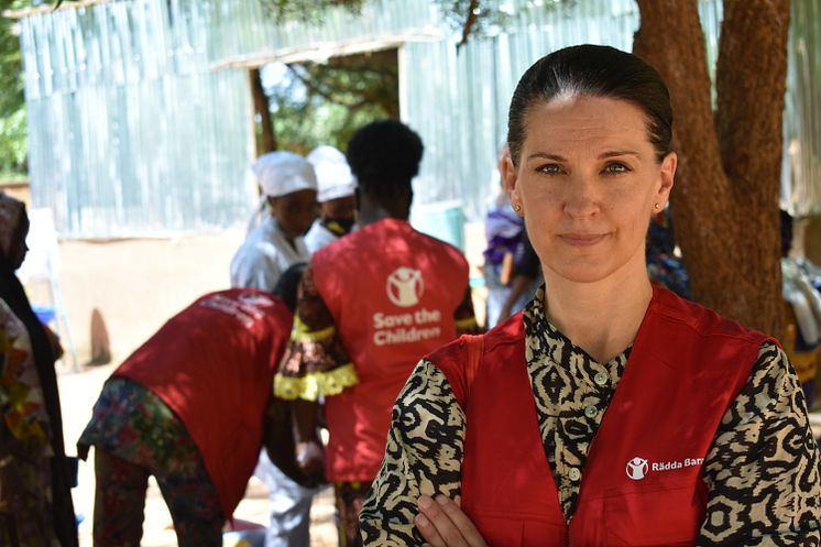 Cecilia Chatterjee-Martinsen, internationell chef, på en av Rädda Barnens kliniker för att behandla undernäring i Burkina Faso.