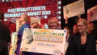 Svenska PostkodLotteriet delade igår kväll ut 53 miljoner kronor till Rädda Barnen. Pengar som kommer att användas till både internationella och svenska projekt under 2012 och utgör ett stort bidrag till vår fortsatta kamp för barns rättigheter. I Sverige kommer pengarna bland annat att gå till projektet "För en tryggare skola” och till internationella projekt som rör arbete kring barnaga.